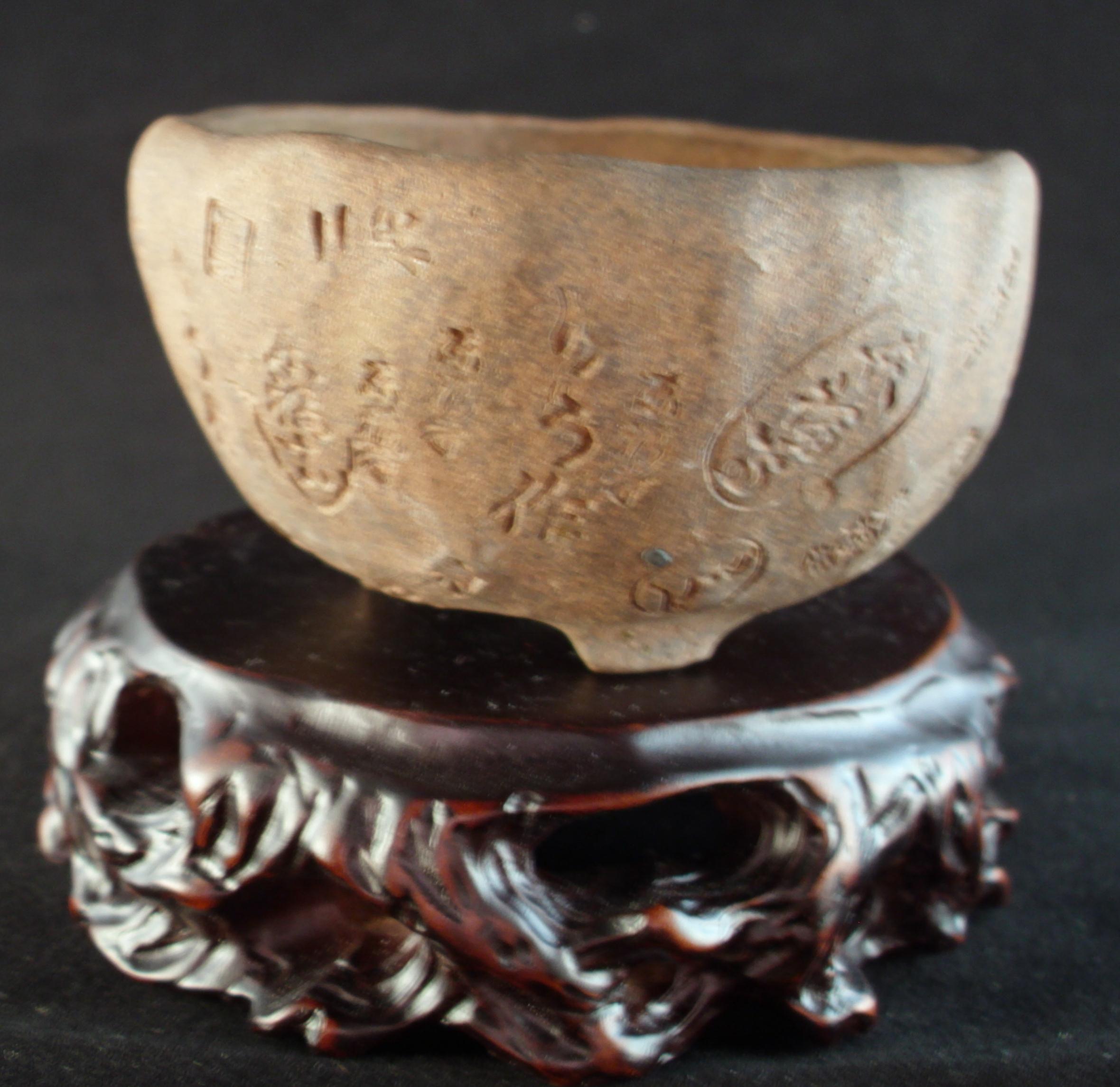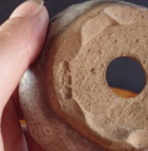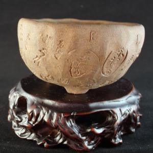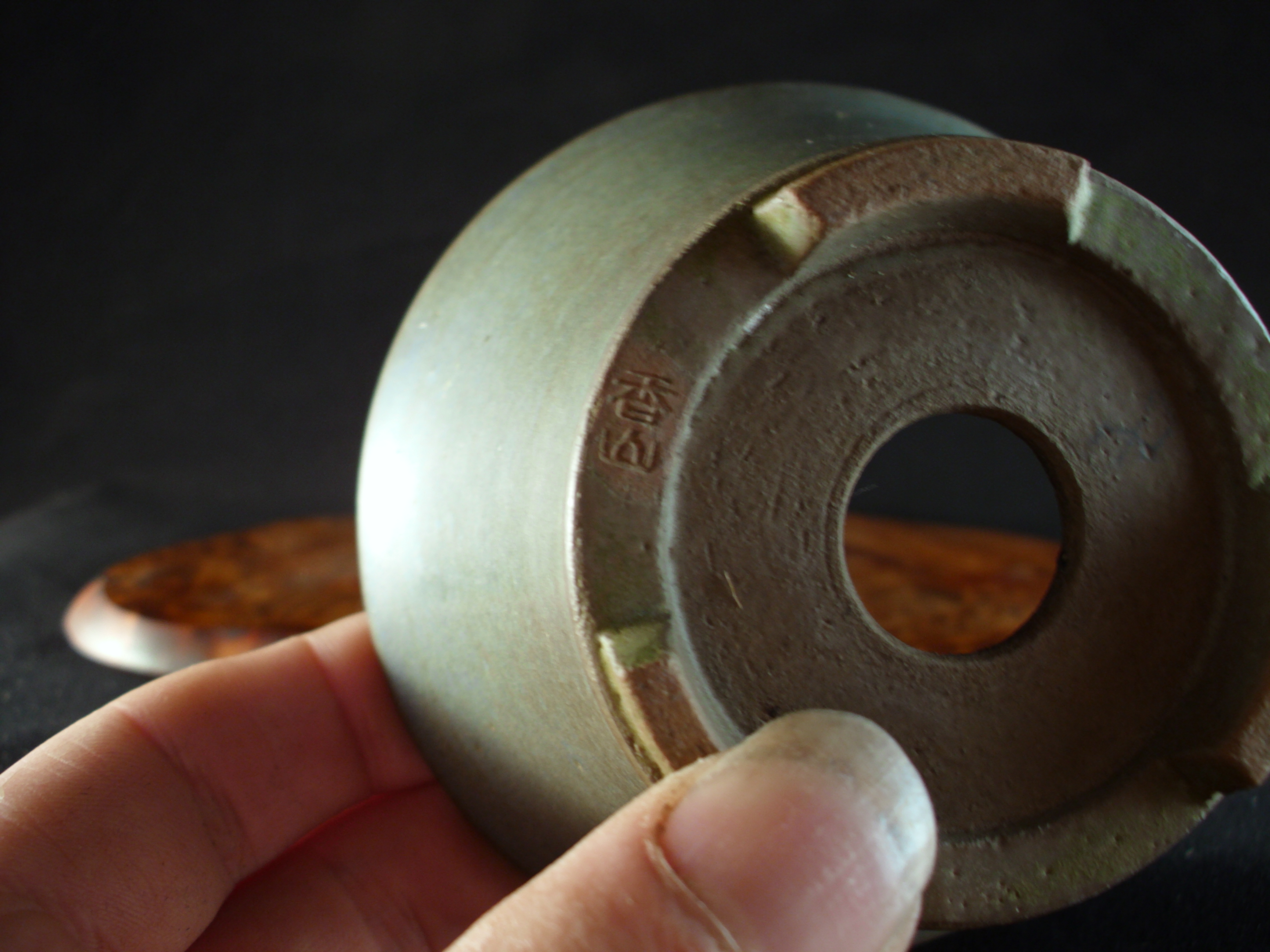 This pot is one of my current favorites in my collection. A Heian Tofukuji 2nd generation homage pot, hand formed with cut feet. This pot features all of the Hanko used by Tofukuji, both first and 2nd generation, made with the original stamps. Not only interesting as a collection piece, the pot is a kind of Rosetta stone of Tofukuji Hanko…given the many forgeries out there, this is dead useful!