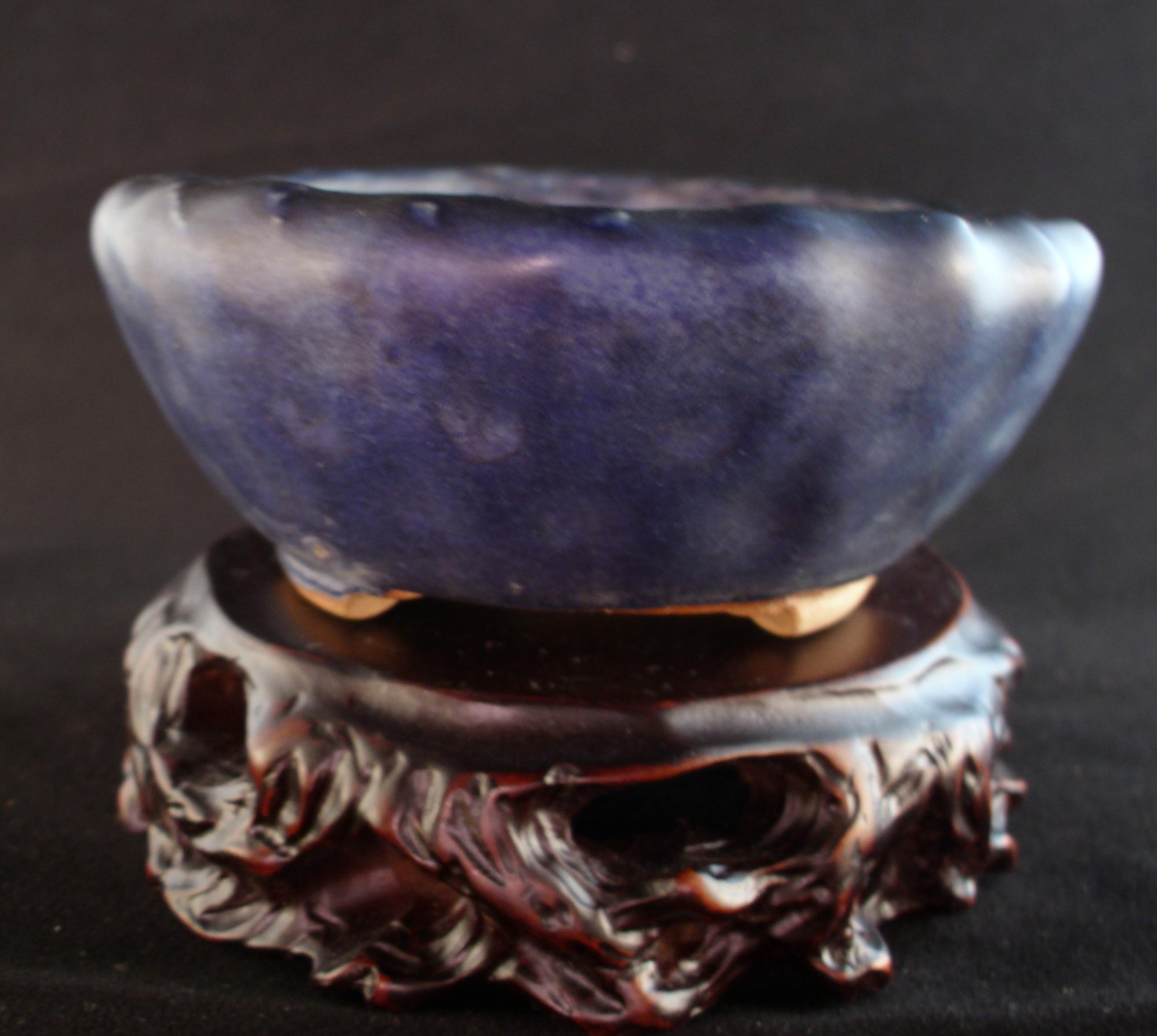 Another 2nd Generation Tofukuji small pot. Used with a Trachelospermum in Gafu Ten 31(page 136 of the album), I like this hand formed pot for a couple of reasons. The glaze is well applied, and clear. The color is nice, a darker blue that contrasts nicely with Bonsai with darker green shades to their leaves, or trunks. A nice patina is beginning to form as well.