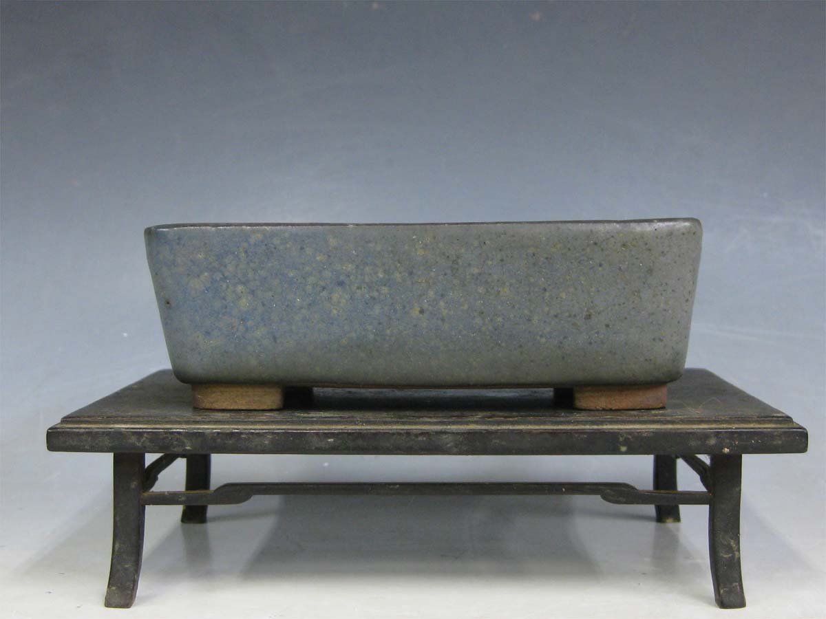 A deep blue oval, with cloud feet. This is the most common blue glaze seen in Tofukuji pots. A marvelous deep indigo.