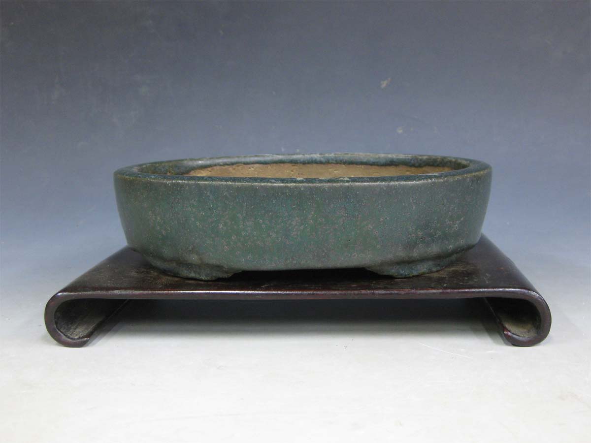 A metallic grey green glazed oval with a marvelous patina.