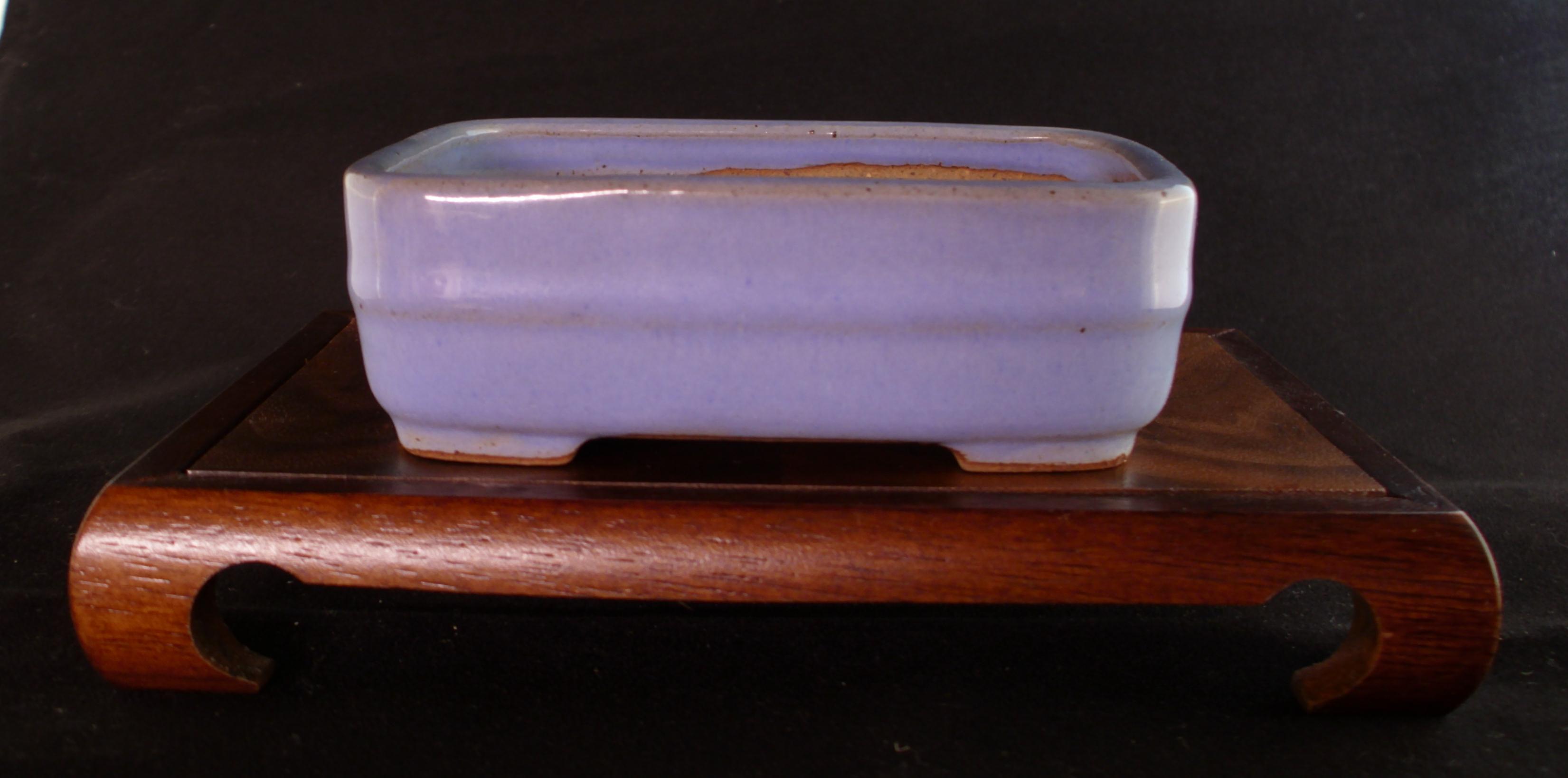A light blue glazed deep, banded rectangle by Watanabe Kazuhiro(Ikkou). I love the blue glazes of Ikkou, as well as his greens, yellows and unglazed clay pots. The is the most common blue color glaze from Ikkou, and looks especially nice on Mokko(Quince flower) pots.