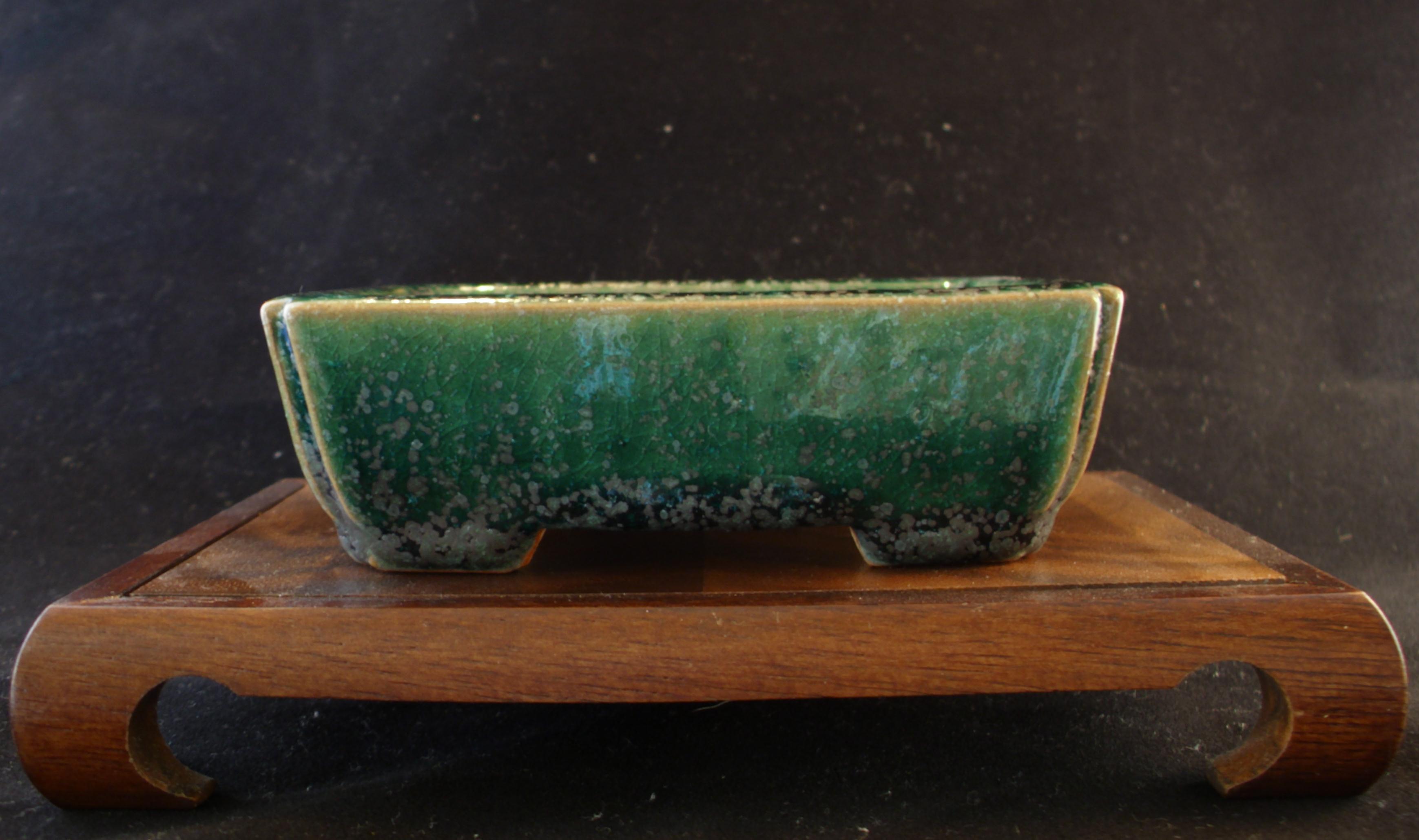 Another Ikkou oval with green and brown glaze and blue highlights. A really nice patina has started to form on this Ikkou, which will only improve as I cant wait to plant it! I really like the subdued greens and blue notes, very refined and versatile.