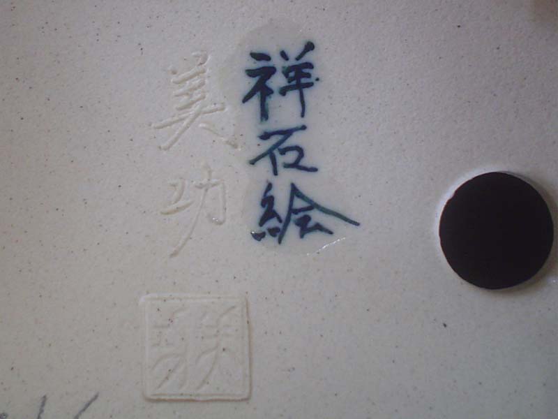 Shoseki is another famous contemporary painter, who sometimes does work for the Tokoname co-op. His landscapes and animal figure paintings are very nice…most of his work features scenes of children, I’m not a fan of those. An old tree in a pot painted with young children is just too much contrast for me to handle!