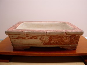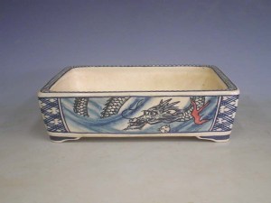 Probably the most famous Sometsuke bonsai pot painter of them all, Yusen’s paintings can vary from clean lines and high details, to impressionist and soft. His paintings are a real marvel, and his ceramic work is every bit as good. Prices are, accordingly, astronomical…be prepared to drop half a years worth of mortgage payments for a decent one!