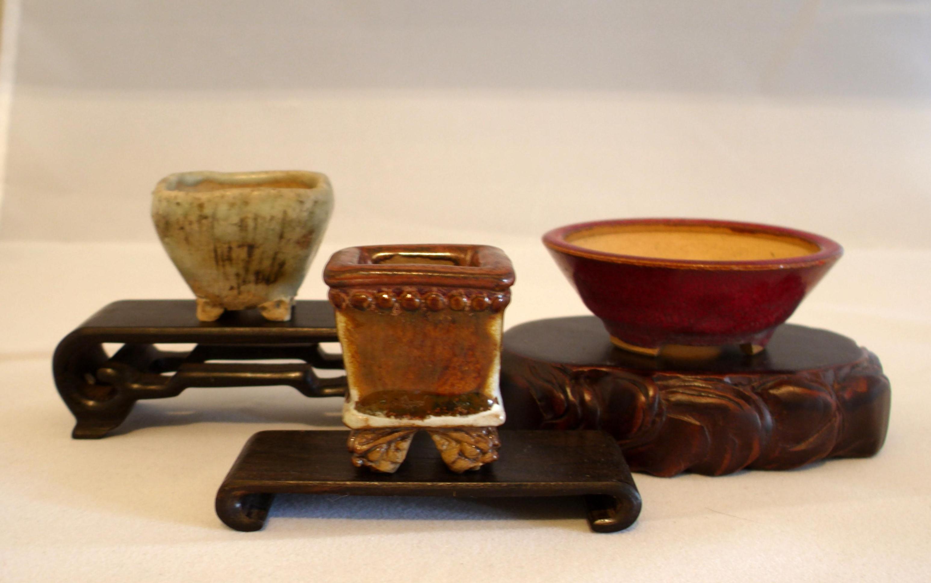 Some Tiny pots! The foot detailing on the Sekishin is unbelievable! Enlearge and check it out! The chicken blood red glazed pot by Heian Kouso is really well made, and starting to develop a nice patina.