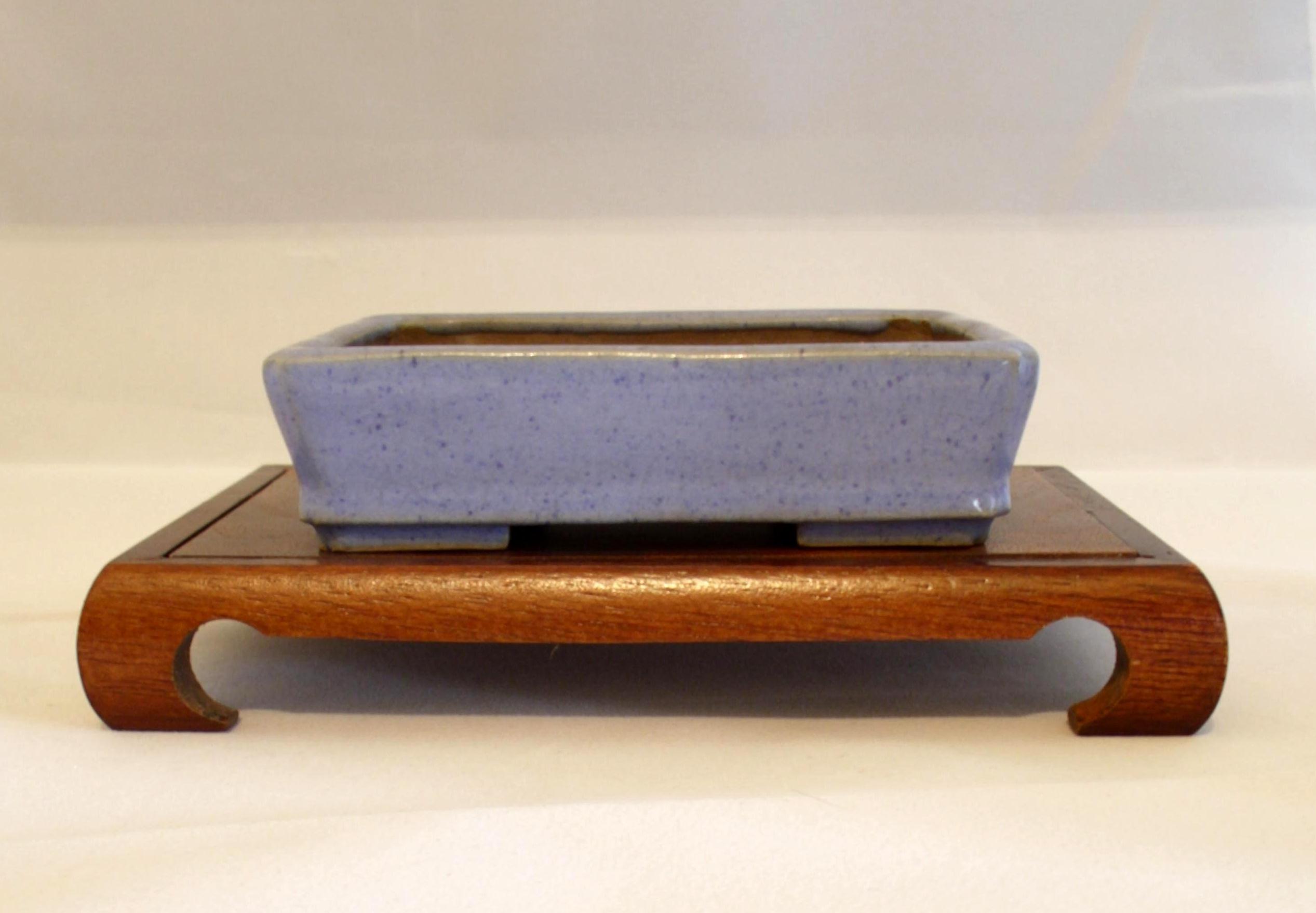 A really nice oval from high end Chinese kiln “Syungado.” I was informed that Syungado has been made making bonsai pots during the entirety of the modern bonsai pottery era, around the turn of the century. Many Syungado pots have made an appearance at the Kokufu-Ten. This particular pot is aeround 50 years old, and has a nice patina and fine hairline crackle. The ornate feet are very well done as well.