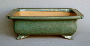 Shibakatsu bonsai pots are made Shibata Shoichi. Most of his pots are mold constructed, but a few handmade and slab built pots are made every now and again. His glazes are bright, rich, and deep, and as a result they often need a little aging and patina before they begin to look right with a tree. One of my personal favorite value potters for shohin size pots.