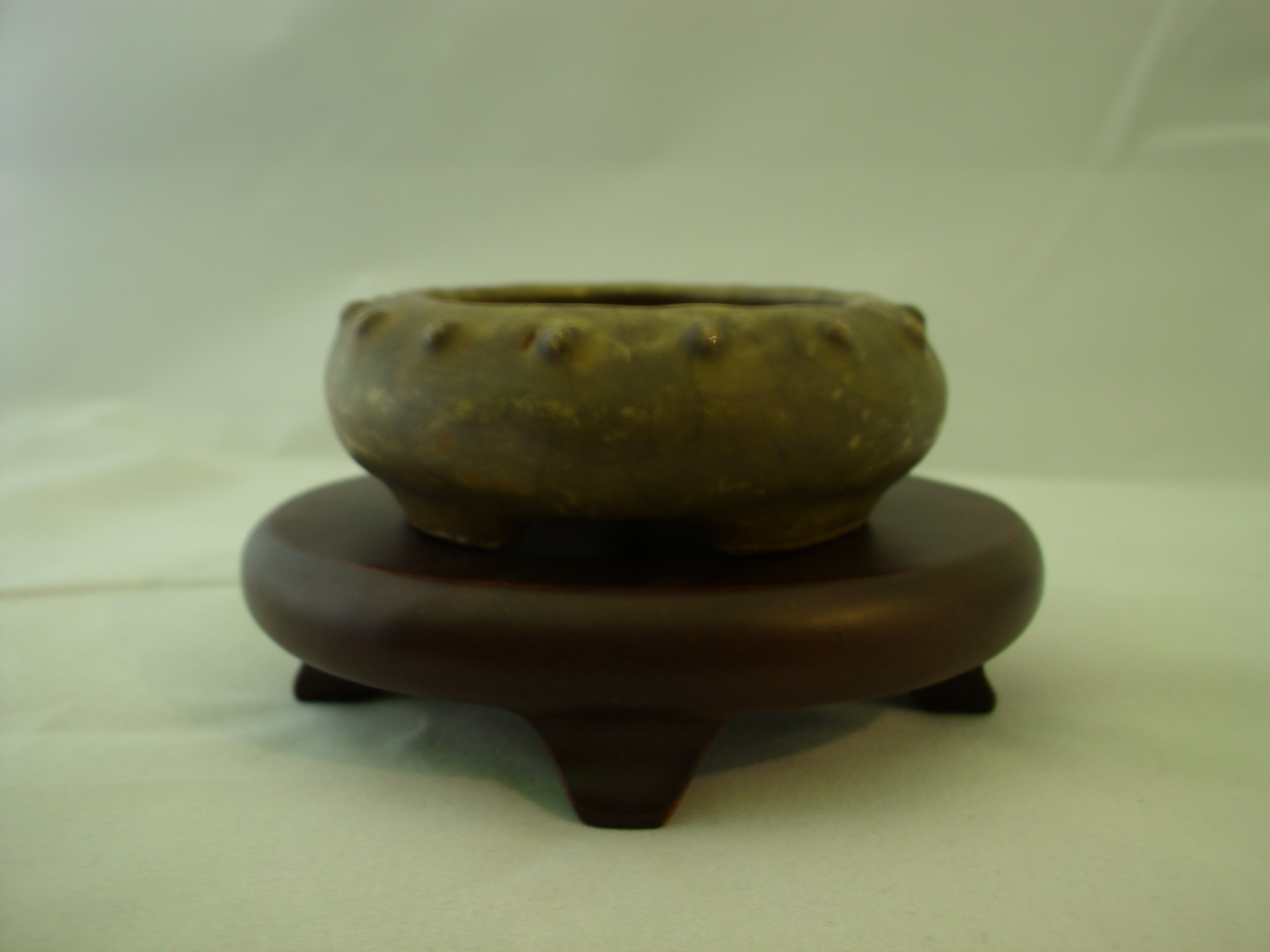 A small rectangle with pear skin clay by Machinao Imaoka. Imaoka makes some of the nicest and most unique Mame and shohin pots around, and they’re relatively inexpensive.