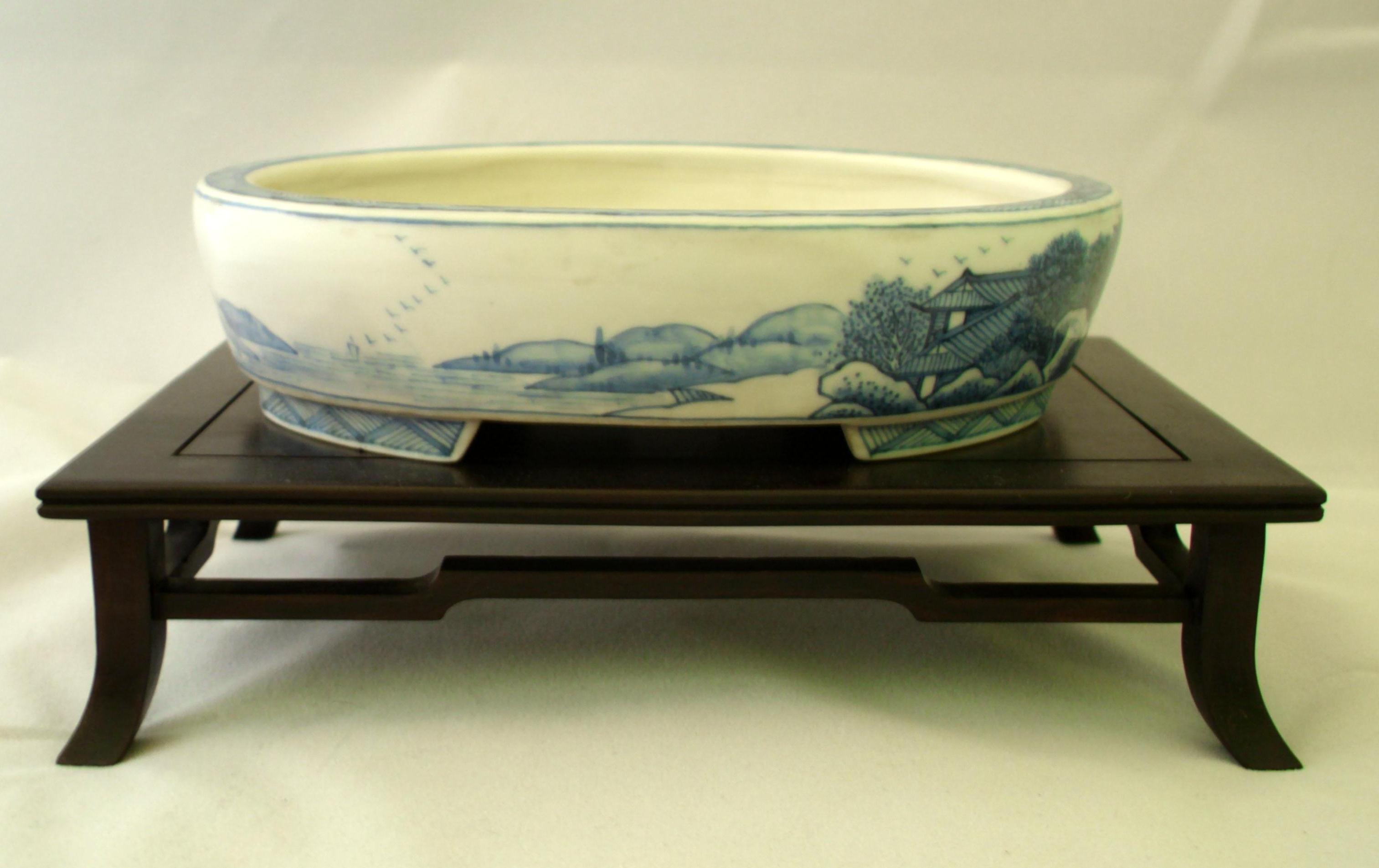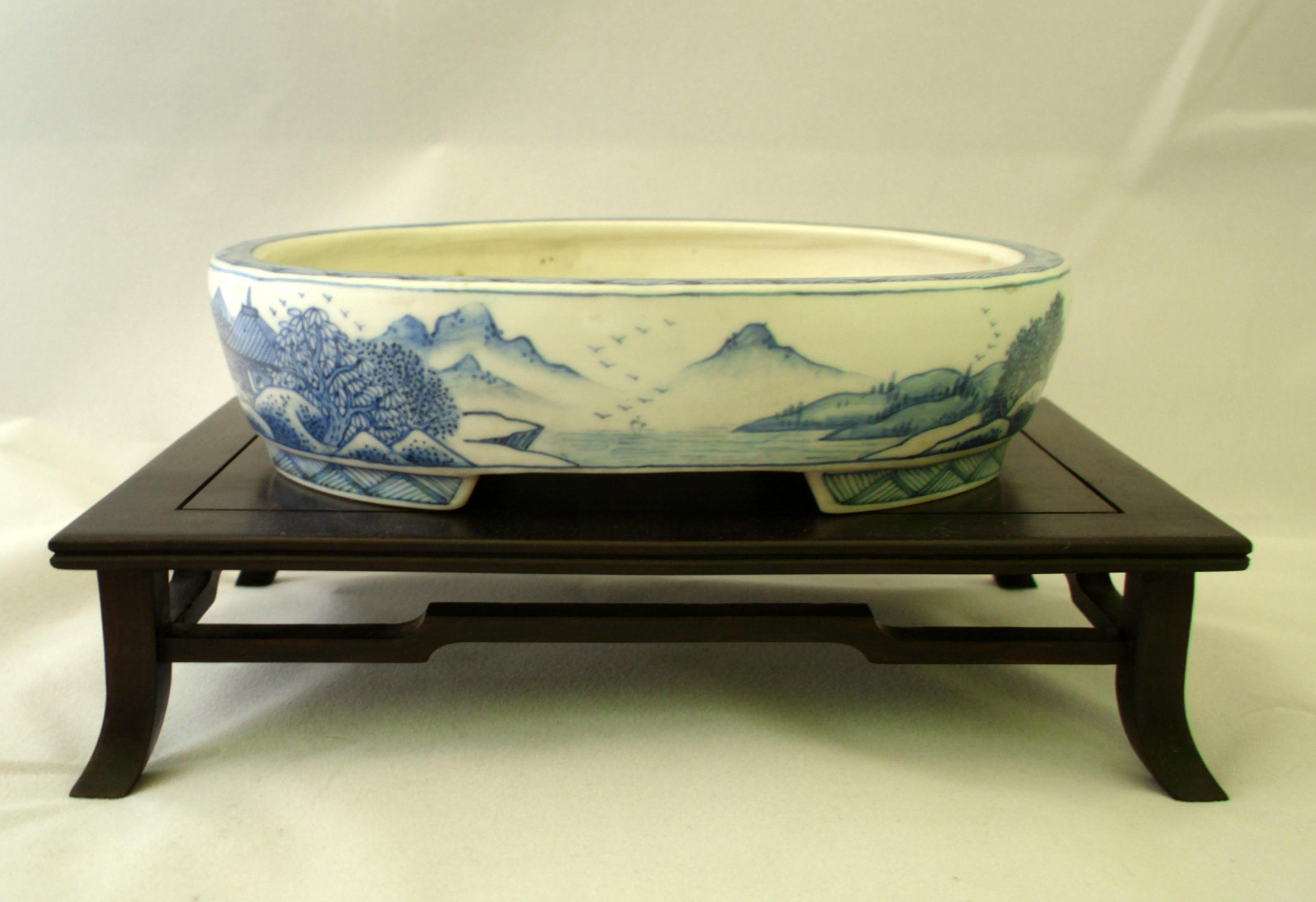 An Oval Sometsuke pot by Itou Gekkou. One of my favorite painters of bonsai pots, Gekkou pots, along with pots by Yusen and Yuzan, are some of the most popular and sought after painting pots for show in Japan. One of my favorite pots in my collection right now, I’ve commissioned a Kiri Bako for the pot from master woodworker and bonsai and suiseki enthusiast Jerry Braswell. You can find his site with ordering information and examples of his work here: