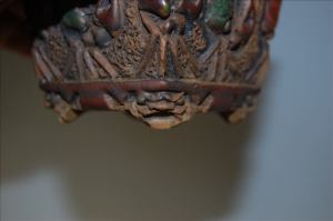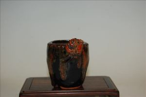 A great little crab pot with cool glaze effects.  As you can see from these posts, Zeshin was a master at blending glazed and unglazed carving.  I wish he made more pots that were simply glazed, his colors are rich and deep, also unique.  I have the only simply glazed one I know of, with detailed carvings restricted to the bottom, Ill pop that up in a future post.