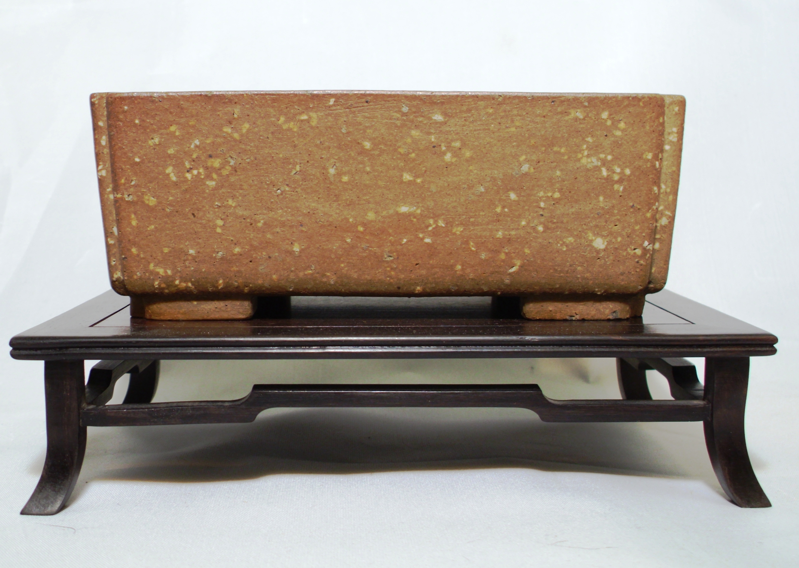 A First generation Tofukuji with cut corners and cut feet, pear skin clay. Tofukuji pots with this stamp were made from the middle to the end of his career. I love the pear skin clay of this pot, and the angles and cut corners are clean and straight.