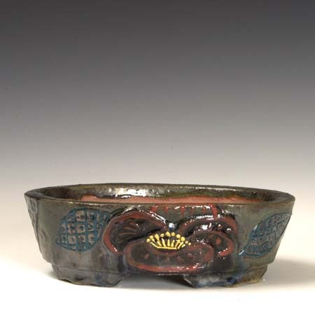 Shohin size Ogurayama with carved and inlaid Dragon, multiple glazes, and detailed feet.