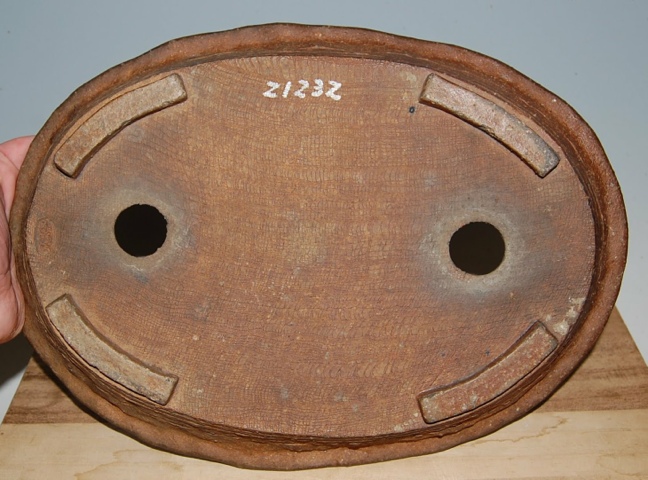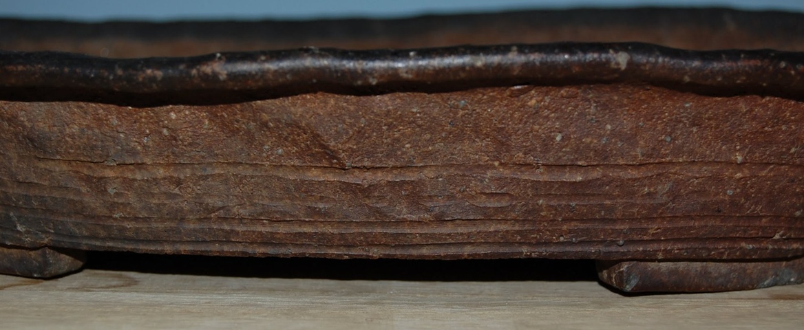 One of the things about this pot that really stands out is the writing on the bottom. This is a numerical catalog code indicating that the pot is formerly of the Takagi collection, now the Takagi museum. Reiji Takagi was a famous collector of both pots and bonsai, as well as other Asian fine art, and his large collection is now a museum in downtown Tokyo, where hundreds of masterpiece bonsai can be viewed on the rooftop garden, while the pottery collection is housed on a lower floor. A nice piece of history to go along with a wonderful pot.