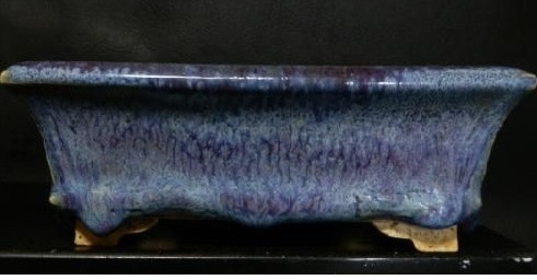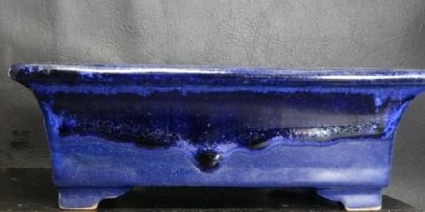 Indigo over blue. I really love the single droplet of glaze in the center of the pot.