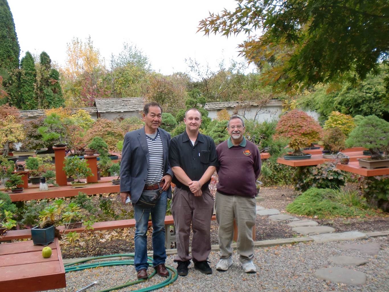 Endo San, me, and Bill in front of the main Benches at International Bonsai Arboretum