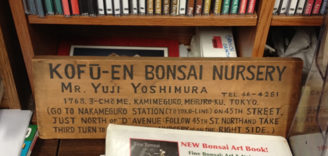 In Bill’s office, I saw this tucked behind some papers and pulled it out for a photo: A little piece of both American and Japanese Bonsai history! For those who don’t know, Yuji Yoshimura was Bill’s teacher, and one of the founders of American Bonsai; his family nursery was Kofu-en in Japan
