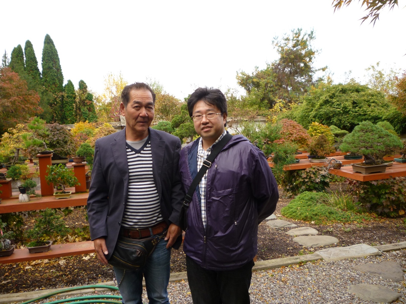 Toriumi and Endo in front of the main display area at International Bonsai Arboretum