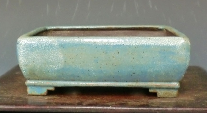 A very thin light blue glaze. Unlike the Tosui pot above, I’m not a big fan of the clay showing here.