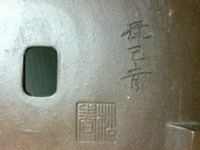 Another collaborative piece, this one between Chazan and Fukushi(福司). This one is for sale from Yorozuen, and shows very nice details, color, and patina.