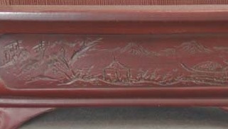 Two images of a carved Bigei in an identical style and shape to the second “Sansui”. Note the feet, shape, and inset recess and placement of the tie down holes on the underside are all the same as the round “Sansui.”