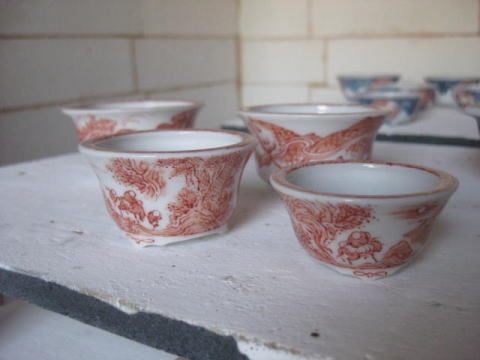 Examining the quality of the porcelain. It’s oft repeated that you can “tell” if a pot is porcelain if light shines through it. This is untrue. There are many pots of quite thick porcelain, and this “test” tells you nothing about whether or not it is porcelain. However, pots that are porcelain can be judged on quality, if light shines through them. Porcelain should be delicate, thin walled. The more light shines through, the better the quality, the skill, the technique. Lovely. This is not easy to do either. In fact, it’s so very difficult, that the significant majority of really nice porcelain pots are made by a potter, then painted by someone else. Many many Kutani pots are made in this fashion, most of a much lower quality of both porcelain technique AND painting skill shown here. Training under a variety of pottery artists: a master clay artisan, a master of glazes, and a master painter, Haruyoshi is like a perfect synergy of all the arts together.