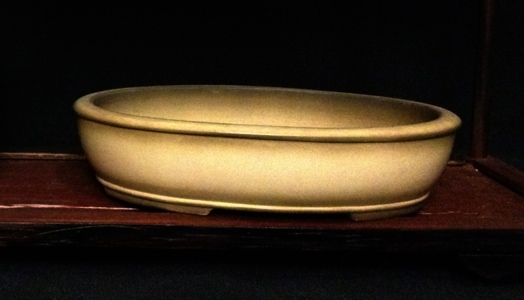 White glazed oval. Glazed Hokido are few and far between, and to my knowledge, the only glaze he ever produced is this cream color. It looks especially nice on his signature antique mirror shape pots…more on that later.