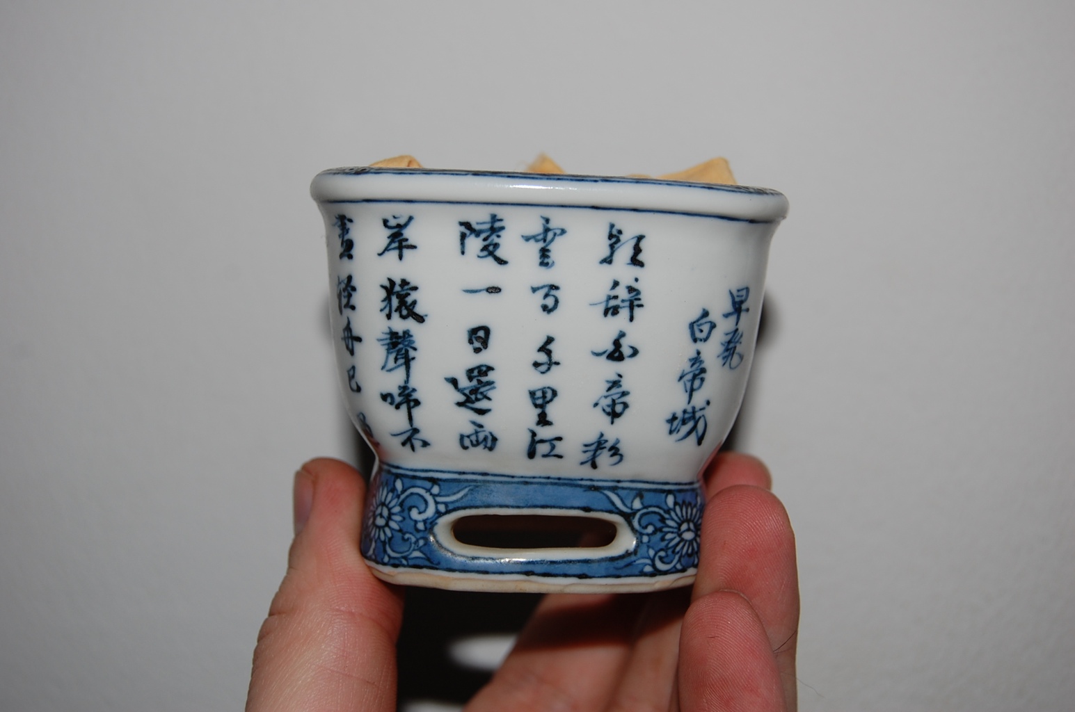 Back and base with signature. It’s safe to assume that the back calligraphy is from old Chinese poetry, and the front illustrates the imagery in the poem.