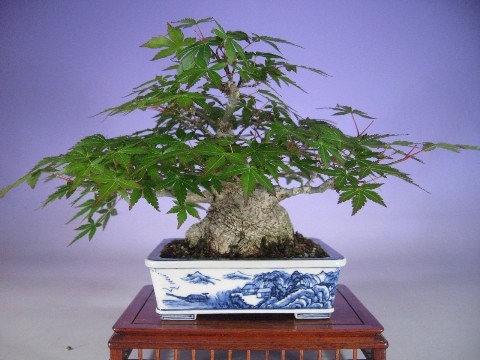 A Kaede in leaf in a very light blue glazed pot. The light blue brings out the bright green of the leaves very nicely, a classical contrast.