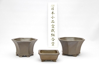 Every Year I look forward to the release of images and results from the Japanese Shohin Bonsai Association’s Kobachi exhibition. The exhibition features the work of 50 potters chosen by Mr. Urushibata, showcasing both advanced amateurs and professional bonsai potters. 3 awards are given by the JSB Association, in the categories of unglazed, glazed, and painted pottery.