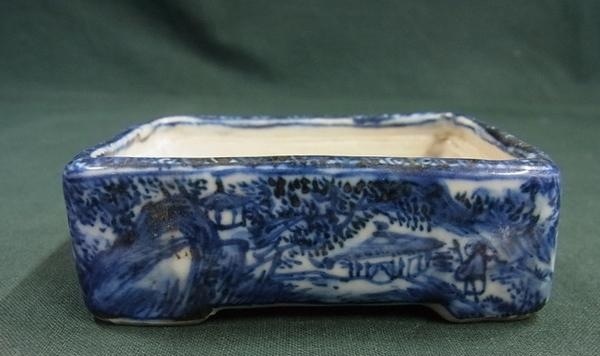 So we’ll start off with one here in the States! This is a Yusen-Yohei collaboration pot in the collection of Matt Ouwinga, of Kaede Bonsai En. The animal clinging to the side is A Yusen signature move, using animals and children, and was used later in pots made and painted by Seifu Yohei. The arabesques on the tiger clinging to the pot are especially nice and well done.