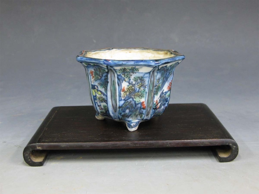 So the first two pots featuring Yusen style animals clinging to the side of the pots were interesting, but this one is beyond the pale! Paintings cover both the inside and outside of the pot.