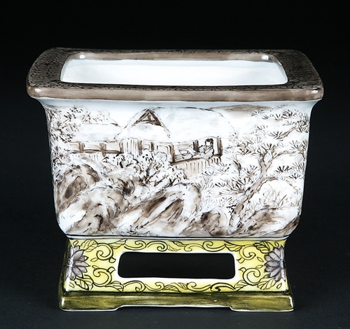 The rarest of the rare: yellow glazed window painted pot by Tsukinowa Yusen.