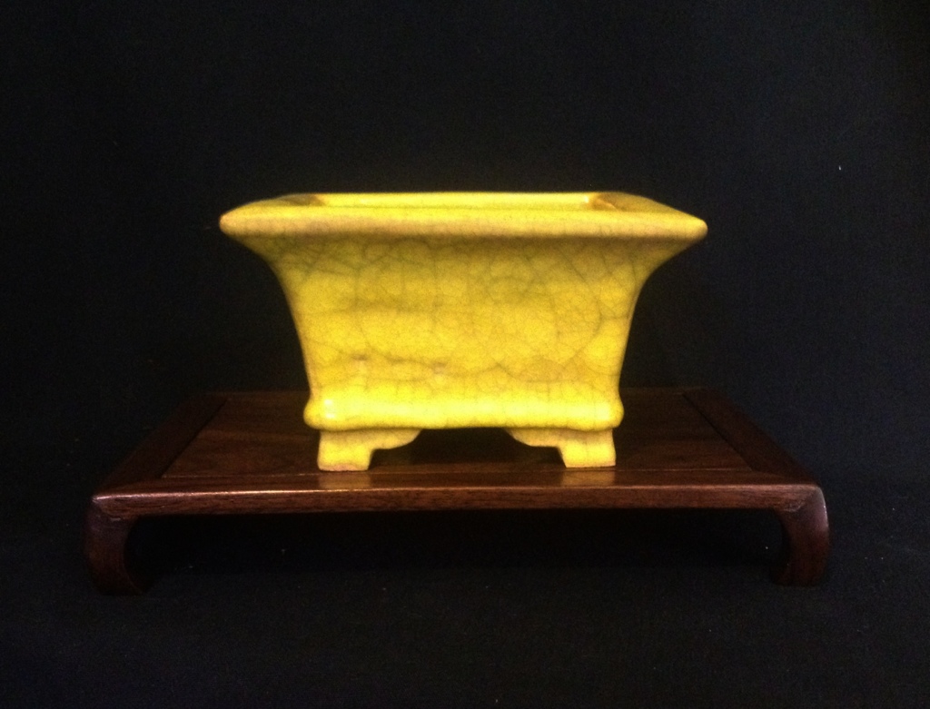 Given the previous photo and caption, I thought we’d finish on a brighter note. Bright yellow, that is. Here is a very nice yellow crackle glazed chuhin sized square. This piece has seen some use, and is beginning to develop a bit of patina.