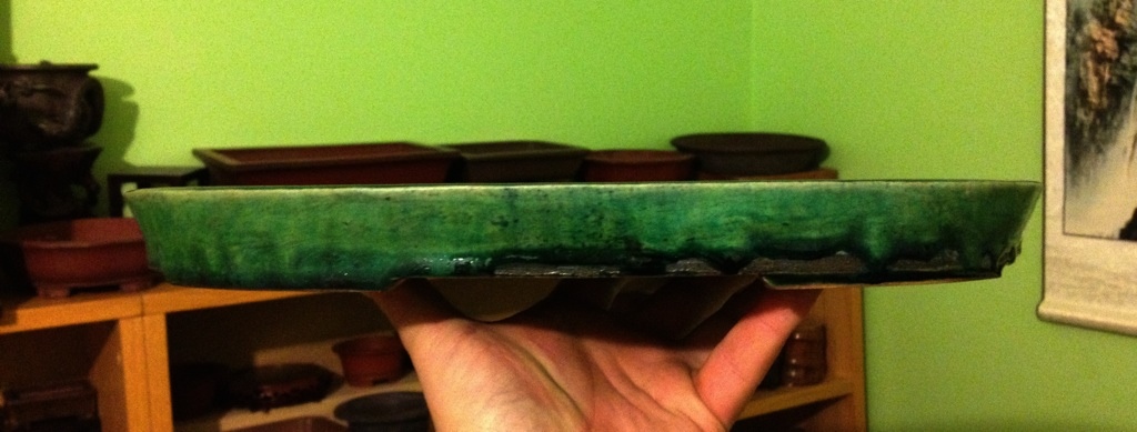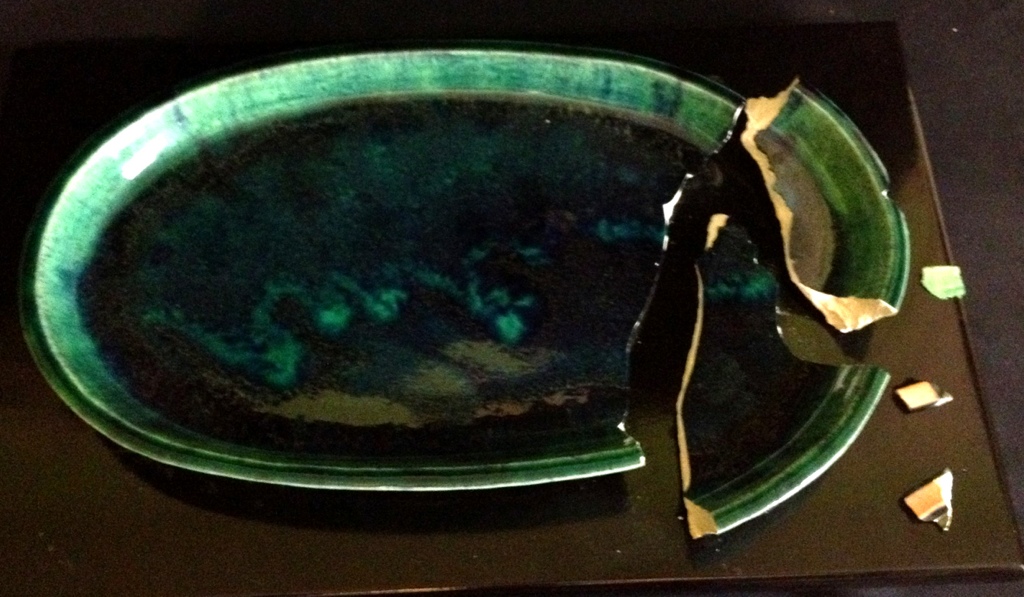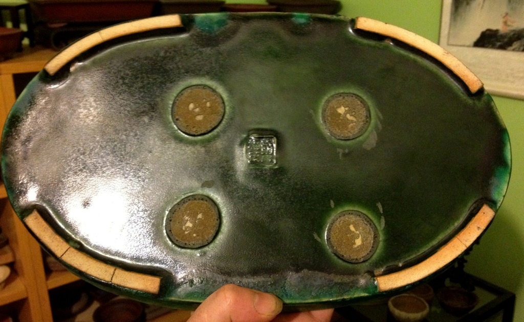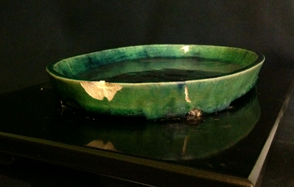 If you do Bonsai or collect ceramics long enough, sooner or later this is going to happen to you. While photographing a rare, one of a kind Suiban from artist Shigeru Fukuda, a stone fell on the suiban, effectively destroying it.