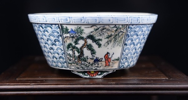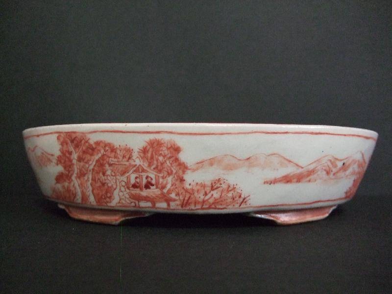 And for comparison, an akae Yusen pot. Note the two figures on the cliff, a common Yusen characteristic that is also seen in many Hosui.