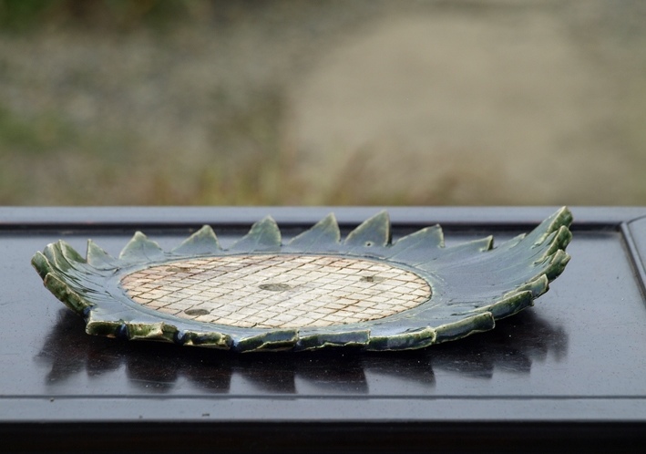 And we’ll finish up our look today at Echizen Hosui with this interesting accent in a very modern Hosui rolled container. Very nice; very avant garde.