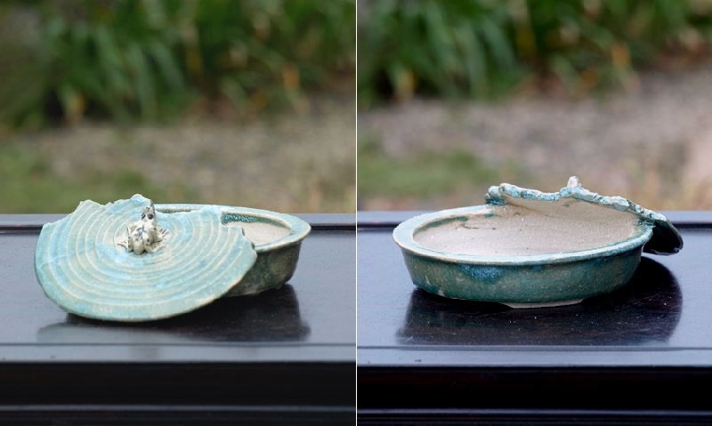 Two interesting accent pots from Hosui. In addition to these rather modern styles, which are common, Hosui also made many Kurama stone style slabs and scoops.