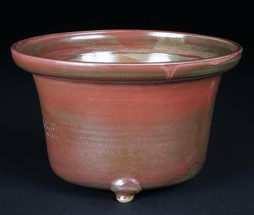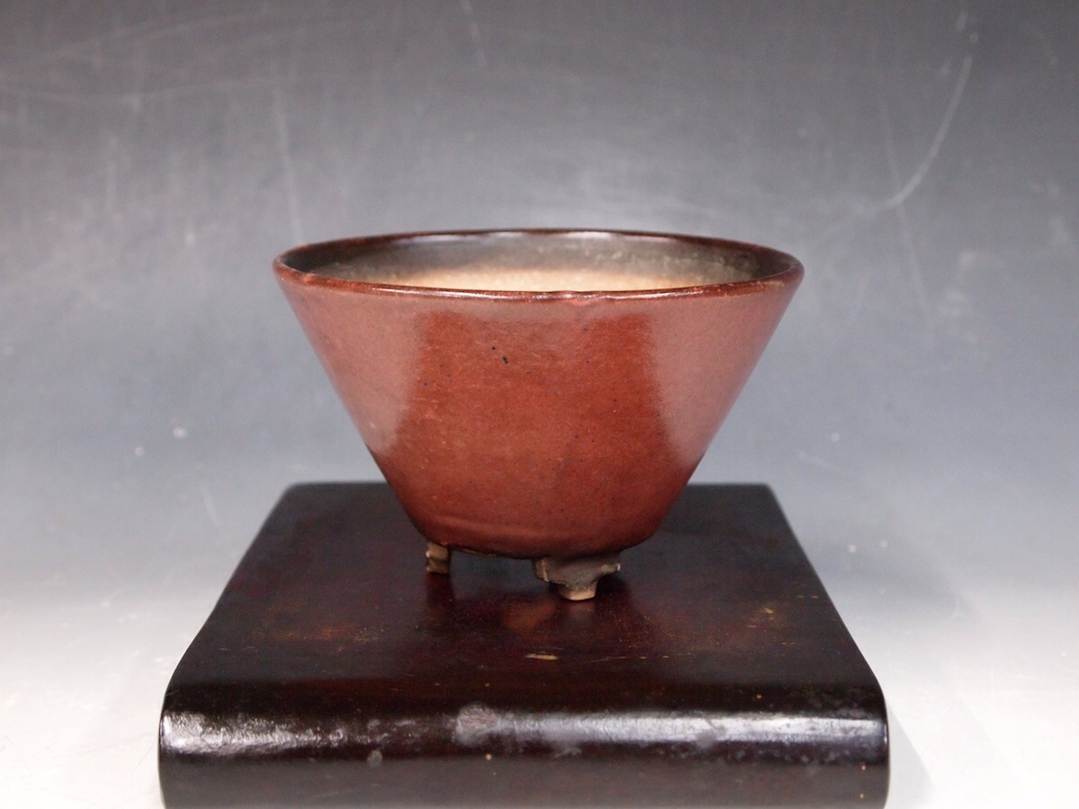 Another round piece in Adzuki Bean glaze with close ups. In the close ups you can see why Gishin is famous for this glaze, as his version has far less mottling than you see from others of the period.