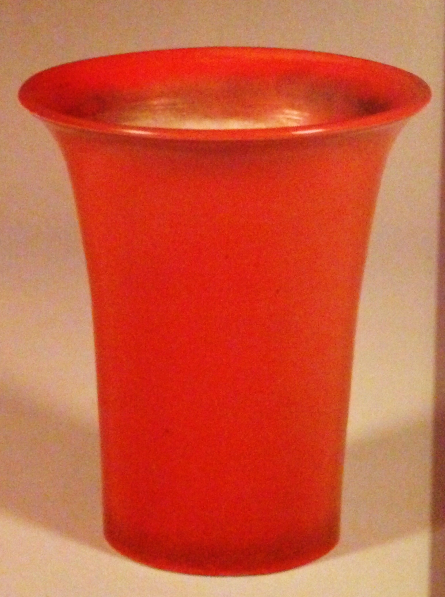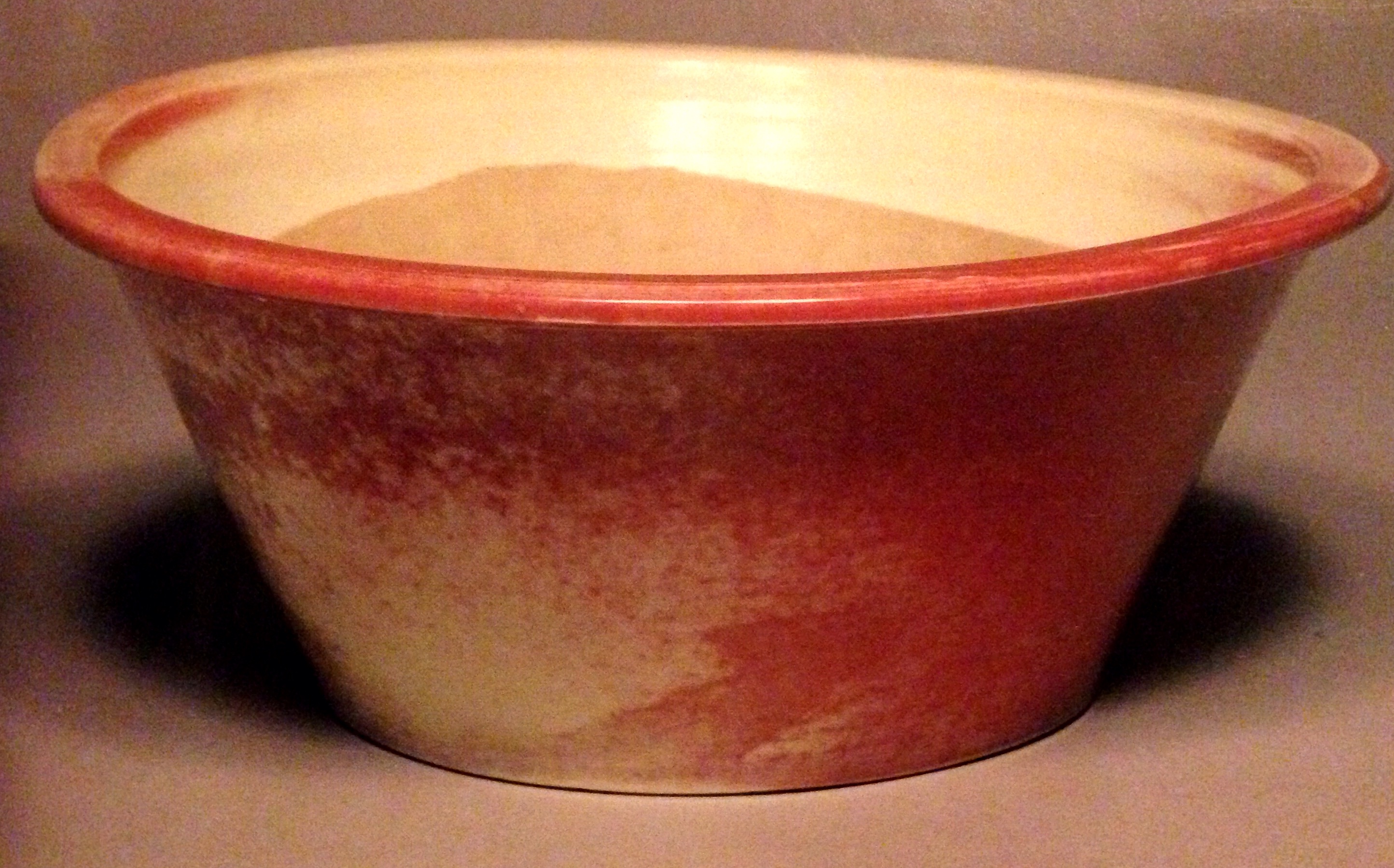 Adzuki, or Red Bean, Glaze is a type of copper based glaze that is not as pure and bright red as Peach bloom red. It often has specks of green where the glaze hasn’t fully reduced to red. This is one of the most outstanding examples of the glaze in existence.