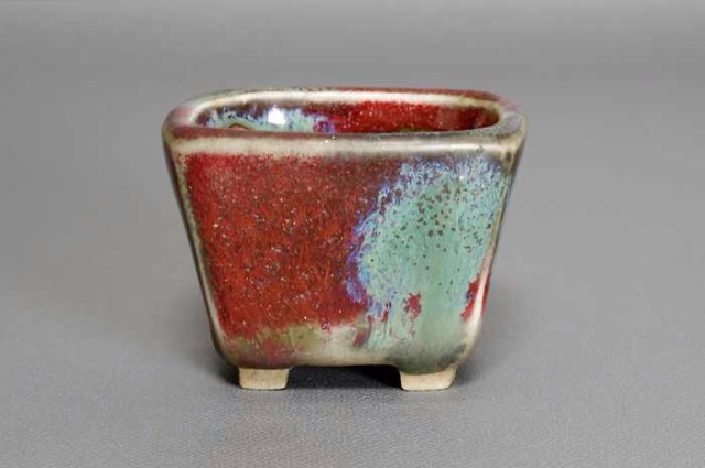 Two views of a rather exceptionally glazed lipped square. The glaze has a feeling of Namako to it.