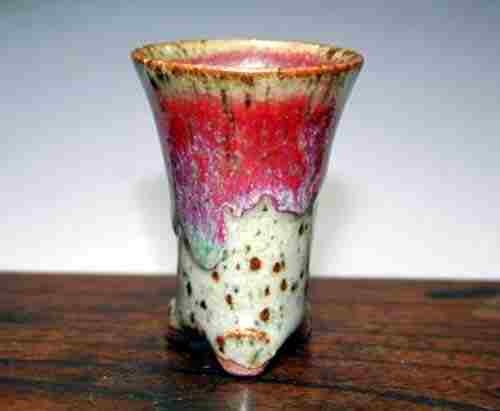 Another cinnabar glazed piece. The two toned appearance is common for certain glazes, the red side faced the fire in the kiln.