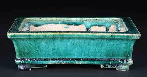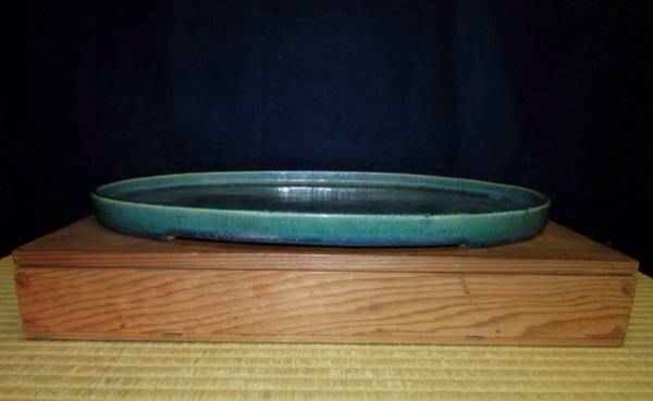 Ino Shukuho is a legacy of 3 generations of potters, each with different styles and techniques. The current Shukuho, Ino Yoshiki, was born in 1943. His father, Ino Kiichiro, was a purveyor for the Imperial Houshokd, and was close friends with Heian Tofukuji; many of Tofukuji’s greatest later works were fired in the Shukuho kiln. Shukuho has won numerous prizes and awards, and his containers are some of the most popular for Shohin bonsai in Japan. The vast majority are carved from a single block of Kyoto clay, leaving production levels very low due to the labor intensive nature of the method.