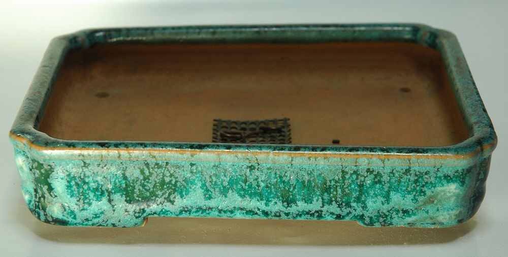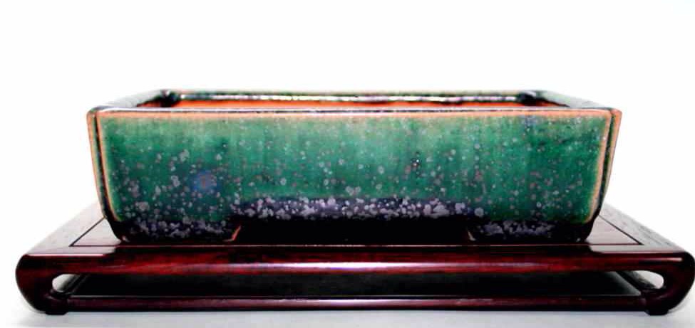 A rarer style rectangle in Oribe with cut corners and great crystal speckling.