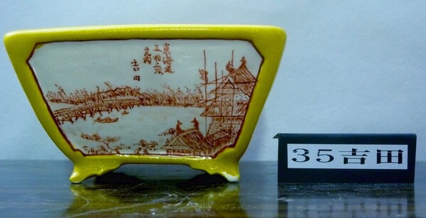 Seizan’s versions are incredibly detailed for such small Shohin containers, and stand up well to the originals. The yellow glaze and nicely done inset panels really set them off. Really excellent work. Hurry!
