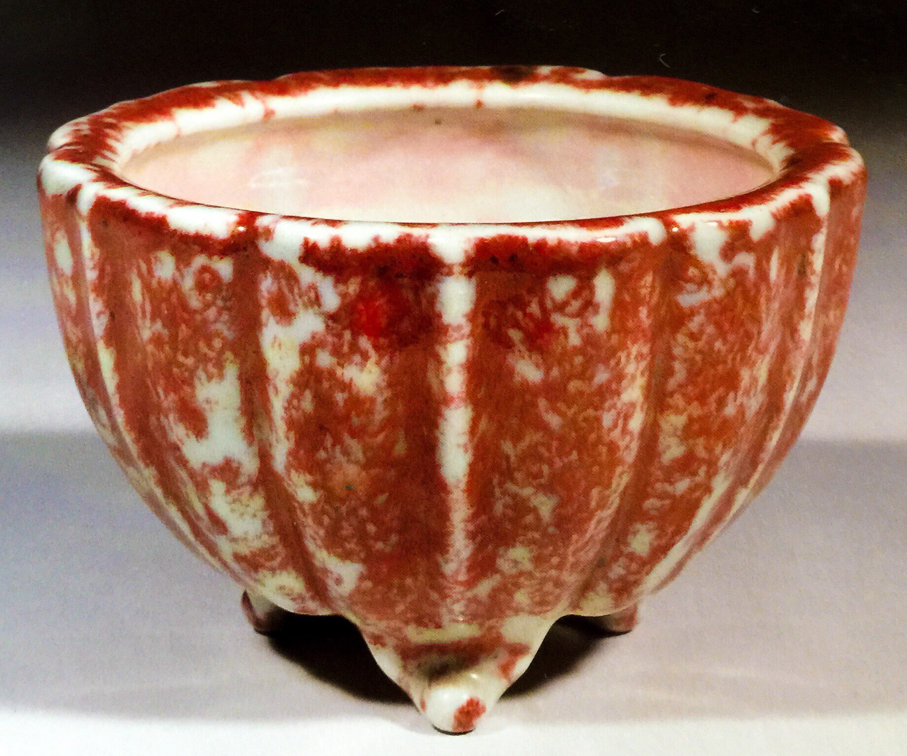 One of Ryosai’s specialties was Flambé glaze, also known as Oribe red or copper red. Under certain conditions(oxidation at 1220C) Oribe glazed are green, under others, they’re red. The level of red in this woven glaze is simply outstanding.
