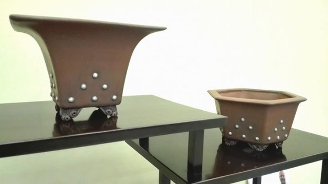 The bronze medal this year for unglazed containers went to Toyoki Yasumoto, who presented a series of 4 mini-bonsai containers.  Very excellent form for such small pieces.