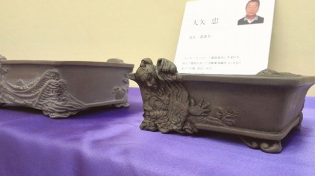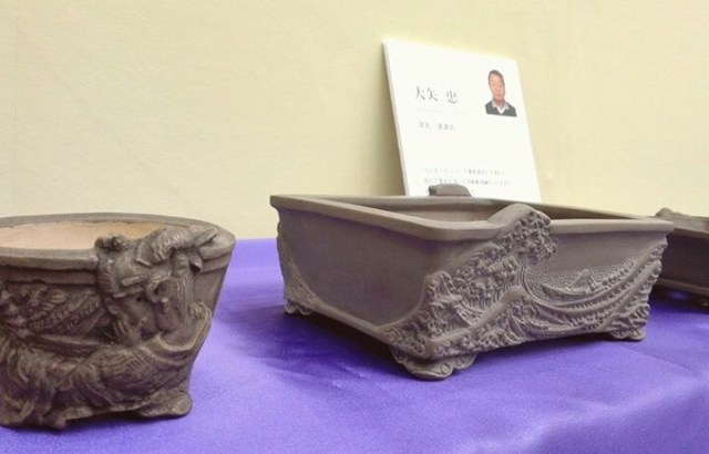 Gold medal in the unglazed category went to Takashi Ono(大矢 忠), who won the category also in 2009 and 2011.  His carvings are some of the best of any bonsai potter of all time, rivaling the greats like Suruga Yamashou and Zeshin.