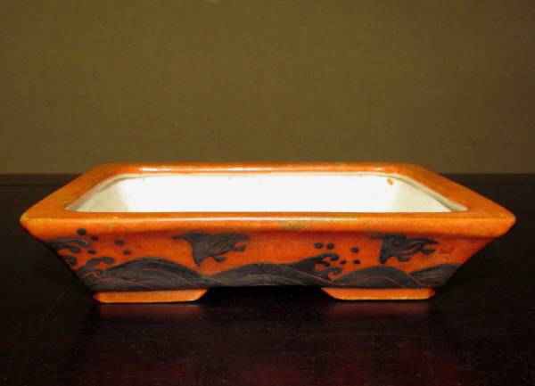 Karahashi Homiyabi was born September 5, 1920, in Kyoto.  Before bonsai pottery, he helped with the family business making traditional Kyo-yaki ware.  He started his earnest apprenticeship as a potter/painter in 1970 under Heian Matsumoto, and gained his independence in 1975, whereupon he built a hybrid gas/electric kiln and took the potter name “Kiyoumine Ogurayama”.  Ogurayama entered his first big bonsai pottery exhibition, the National Masterpiece Kobachi, in 1981, and took the Grand Prize.  Since then, he’s won numerous awards and medals for his work.  He is now retired, and his son is the Ogurayama.