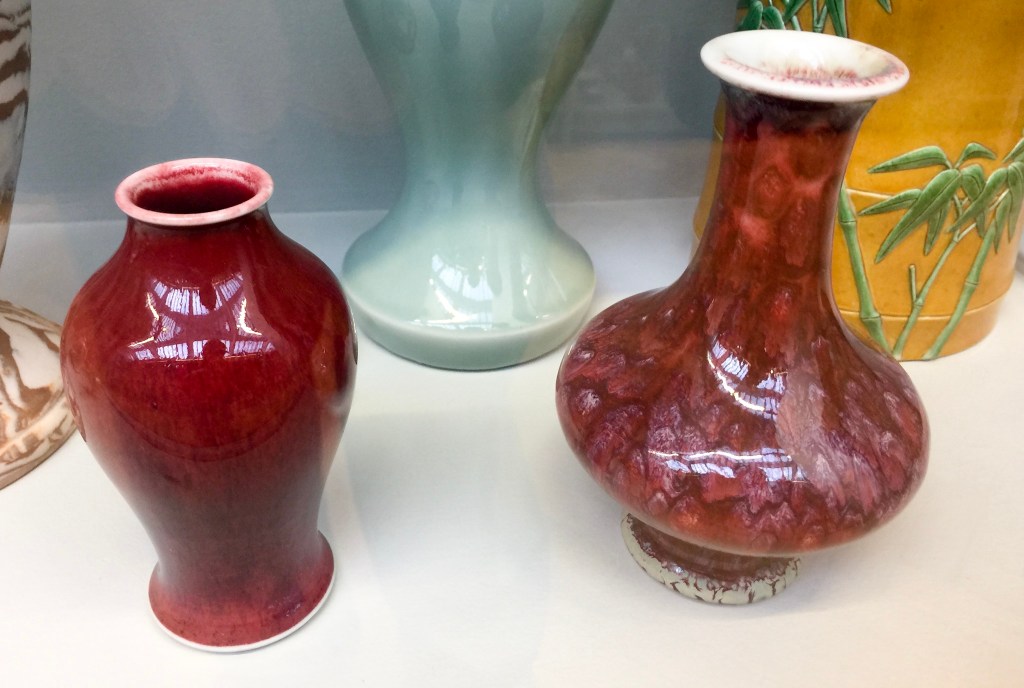 Amazing antique Chinese Oxblood, Peach Blossom, and Flambé glazes at the A&V Museum.