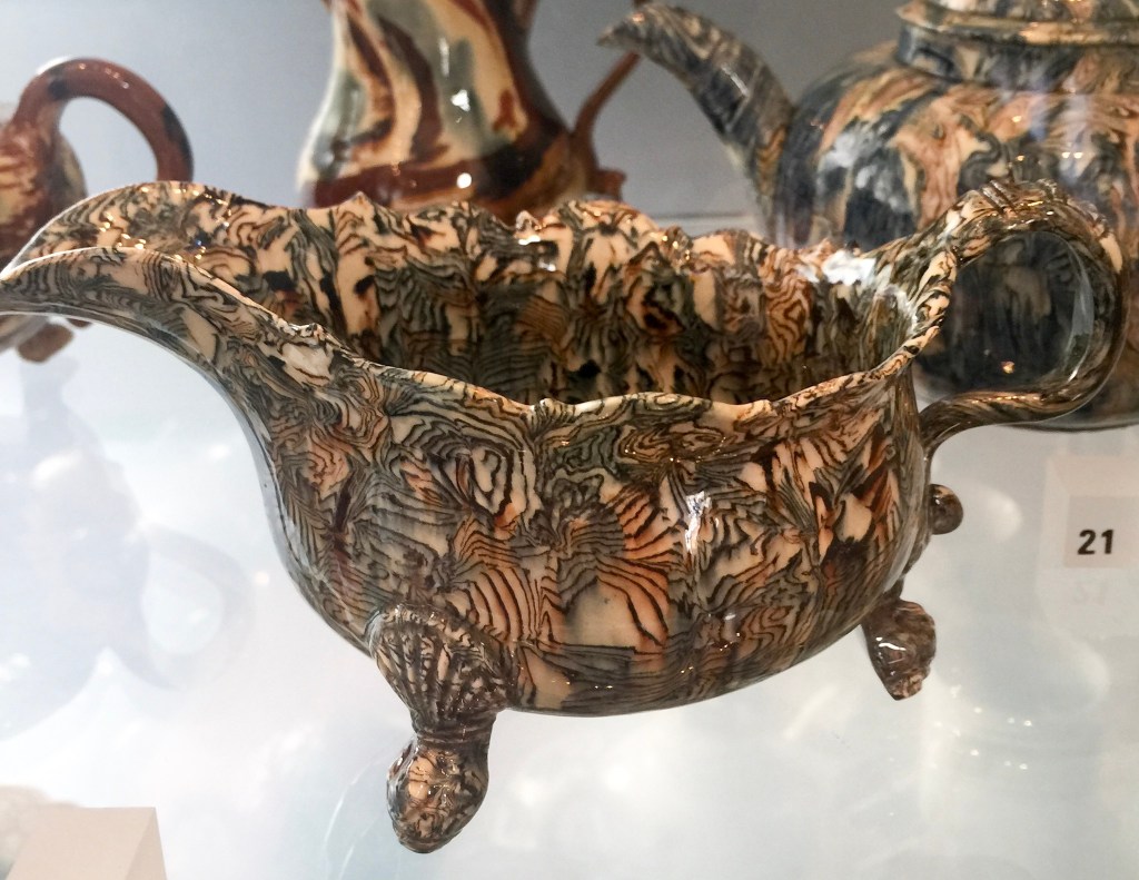 Gorgeous antique British Agateware at the Victoria and Albert Museum, London. The V&A houses one of the most extensive and comprehensive pottery collections in the world.